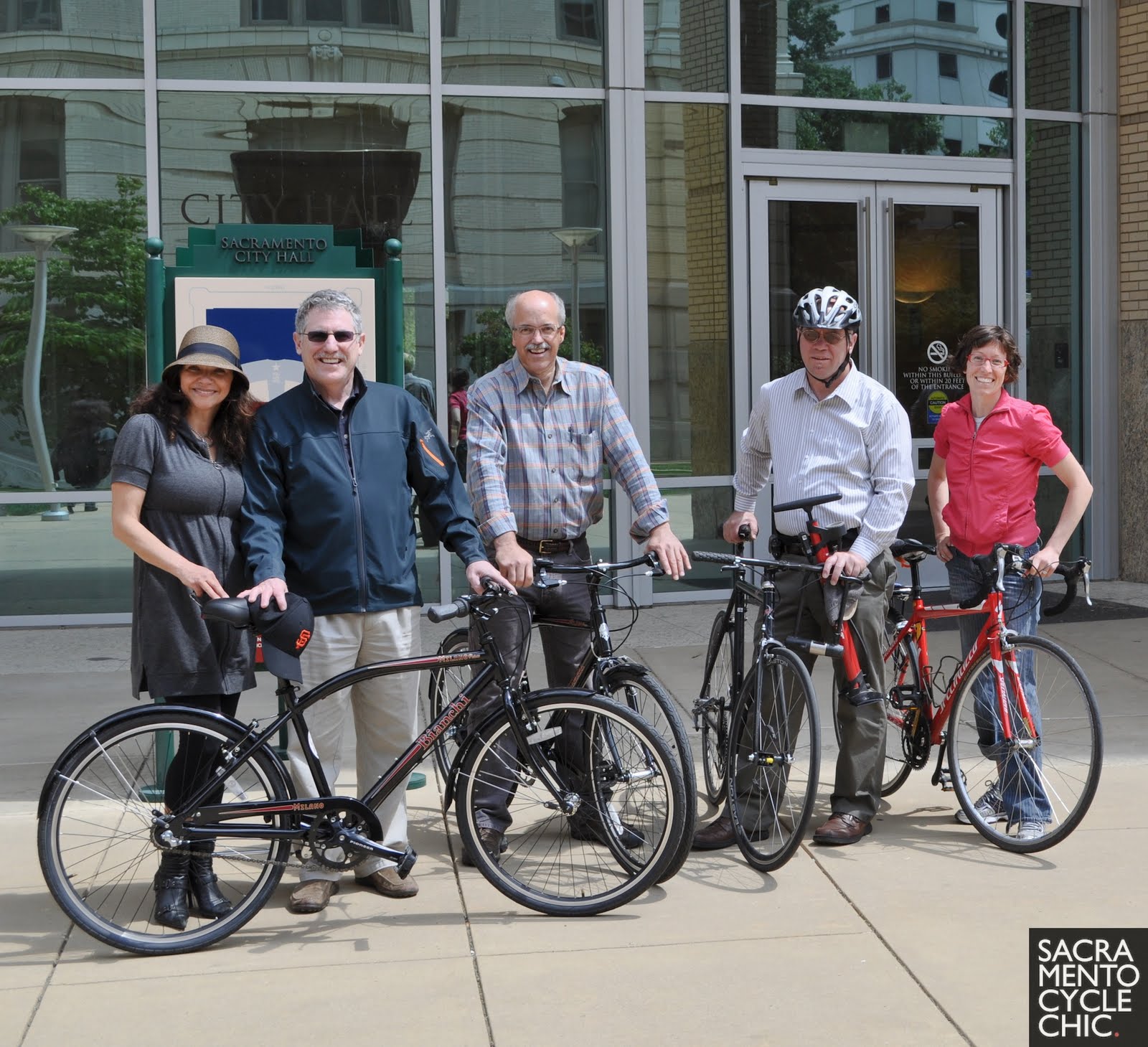 | At City Hall. From left to right: Moi, Steve Cohn, Rob Kerth, Ed Cox - Sac Bike/Ped Coordinator, Tricia Hedahl |